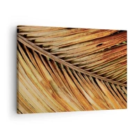 Tablou pe pânză Canvas - Prim-plan al unei frunze de palmier uscate în tonuri calde - 70x50cm - Aur de nucă de cocos - Decorațiune modernă pentru perete pentru living și dormitor ARTTOR