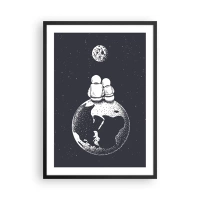 Poster în ramă neagră - Astronauții stând pe Pământ și privind Luna - 50x70cm - Poveste cosmică de dragoste - Decorațiune modernă pentru perete pentru living și dormitor ARTTOR