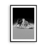 Poster în ramă neagră - Cai galopând pe un fundal monocromatic - 50x70cm - Galopul libertății - Decorațiune modernă pentru perete pentru living și dormitor ARTTOR