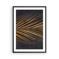 Poster în ramă neagră - Frunze aurii pe un fundal întunecat - 50x70cm - Aur tropical - Decorațiune modernă pentru perete pentru living și dormitor ARTTOR