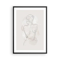 Poster în ramă neagră - O siluetă feminină delicată într-o linie continuă - 50x70cm - Ca un instrument sensibil - Decorațiune modernă pentru perete pentru living și dormitor ARTTOR