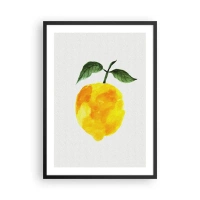 Poster în ramă neagră - Ilustrație în acuarelă a unei lămâi cu frunze pe un fundal deschis - 50x70cm - Cum să simțiți gustul soarelui - Decorațiune modernă pentru perete pentru living și dormitor ARTTOR
