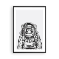 Poster în ramă neagră - O maimuță într-un costum spațial pe un fundal alb - 50x70cm - Evoluție alternativă - Decorațiune modernă pentru perete pentru living și dormitor ARTTOR