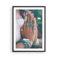 Poster în ramă neagră - Mâini decorate cu bijuterii în stil boho - 50x70cm - Bine ați venit în centrul ființei - Decorațiune modernă pentru perete pentru living și dormitor ARTTOR