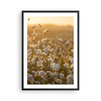 Poster în ramă neagră - Un câmp de bumbac în lumina caldă a soarelui apus - 50x70cm - Câmp pufos - Decorațiune modernă pentru perete pentru living și dormitor ARTTOR