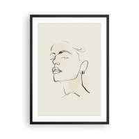 Poster în ramă neagră - Portret minimalist al unei femei în stilul artă liniară - 50x70cm - O privire mândră - Decorațiune modernă pentru perete pentru living și dormitor ARTTOR