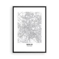 Poster în ramă neagră - O hartă alb-negru a Berlinului cu străzi cartografiate precis. - 50x70cm - Floare de Berlin - Decorațiune modernă pentru perete pentru living și dormitor ARTTOR