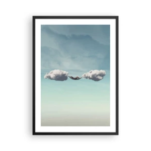 Poster în ramă neagră - Un hamac suspendat între doi nori pe cer - 50x70cm - Fericirea momentului - Decorațiune modernă pentru perete pentru living și dormitor ARTTOR
