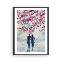 Poster în ramă neagră - Un cuplu sub ramuri înflorite într-un peisaj romantic - 50x70cm - Plimbare romantică - Decorațiune modernă pentru perete pentru living și dormitor ARTTOR