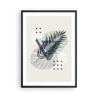 Poster în ramă neagră - Frunze tropicale abstracte pe un fundal deschis - 50x70cm - Natura și geometria - două ordine? - Decorațiune modernă pentru perete pentru living și dormitor ARTTOR
