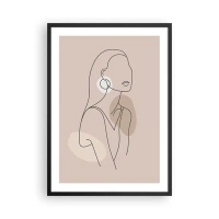 Poster în ramă neagră - Un desen minimalist al unei femei în nuanțe pastelate de bej. - 50x70cm - Icoana fecioarei - Decorațiune modernă pentru perete pentru living și dormitor ARTTOR