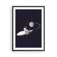 Poster în ramă neagră - Un astronaut stând pe o rachetă care zboară în spațiu - 50x70cm - Surfer spațial - Decorațiune modernă pentru perete pentru living și dormitor ARTTOR