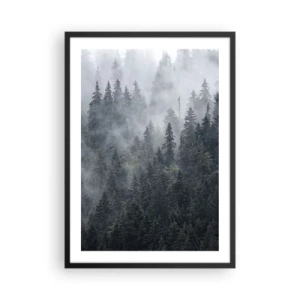 Poster în ramă neagră - O pădure încețoșată cu conifere înalți - 50x70cm - Zori de pădure - Decorațiune modernă pentru perete pentru living și dormitor ARTTOR