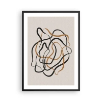 Poster în ramă neagră - Linii abstracte încâlcite în negru și auriu pe bej - 50x70cm - Totul s-a încurcat - Decorațiune modernă pentru perete pentru living și dormitor ARTTOR