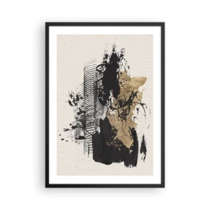 Poster în ramă neagră - Compoziție abstractă în nuanțe de negru și auriu - 50x70cm - Compoziție cu pasiune - Decorațiune modernă pentru perete pentru living și dormitor ARTTOR