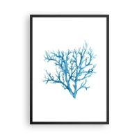 Poster în ramă neagră - Coral albastru în stil acuarelă pe fundal alb - 50x70cm - Filigranul marin - Decorațiune modernă pentru perete pentru living și dormitor ARTTOR