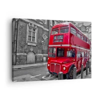 Tablou pe pânză Canvas - Un autobuz roșu cu etaj în Londra, pe fundalul unei arhitecturi clasice - 70x50cm - Întotdeauna la fel - Decorațiune modernă pentru perete pentru living și dormitor ARTTOR