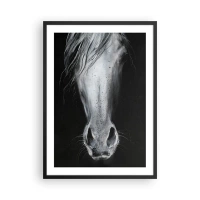 Poster în ramă neagră - Prim-plan al feței unui cal în alb și negru - 50x70cm - O privire seducătoare - Decorațiune modernă pentru perete pentru living și dormitor ARTTOR