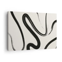 Tablou pe pânză Canvas - Linii curbate alb-negru pe un fundal deschis - 70x50cm - Capriciu în alb și negru - Decorațiune modernă pentru perete pentru living și dormitor ARTTOR