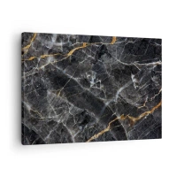 Tablou pe pânză Canvas - Detalii negre și aurii ale suprafeței de marmură - 70x50cm - Viața interioară a unei pietre - Decorațiune modernă pentru perete pentru living și dormitor ARTTOR