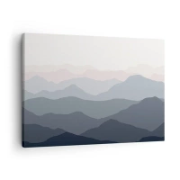 Tablou pe pânză Canvas - Straturi subtile de munte în nuanțe de gri și albastru - 70x50cm - Valuri de munți - Decorațiune modernă pentru perete pentru living și dormitor ARTTOR