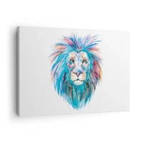 Tablou pe pânză Canvas - Portret în acuarelă al unui leu în culori vii - 70x50cm - Aură electrizantă - Decorațiune modernă pentru perete pentru living și dormitor ARTTOR