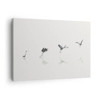 Tablou pe pânză Canvas - Patru siluete de păsări reflectate în apa calmă - 70x50cm - Patru pași simpli - Decorațiune modernă pentru perete pentru living și dormitor ARTTOR