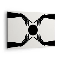 Tablou pe pânză Canvas - Mâini negre într-o compoziție simetrică cu o minge - 70x50cm - Semnul secret - Decorațiune modernă pentru perete pentru living și dormitor ARTTOR