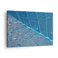 Tablou pe pânză Canvas - O frunză în nuanțe de albastru cu picături de apă - 70x50cm - Viața în albastru - Decorațiune modernă pentru perete pentru living și dormitor ARTTOR