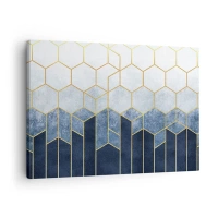 Tablou pe pânză Canvas - Model geometric în nuanțe de auriu și albastru marin - 70x50cm - Compoziție în ritm sincopat - Decorațiune modernă pentru perete pentru living și dormitor ARTTOR