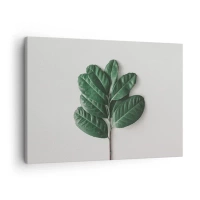 Tablou pe pânză Canvas - O crenguță de frunze verzi pe un fundal deschis - 70x50cm - Desenul naturii însăși - Decorațiune modernă pentru perete pentru living și dormitor ARTTOR