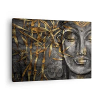 Tablou pe pânză Canvas - Imagine Zen a lui Buddha cu bambus auriu - 70x50cm - Simțiți pacea - Decorațiune modernă pentru perete pentru living și dormitor ARTTOR
