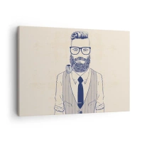 Tablou pe pânză Canvas - Bărbat stilizat cu barbă, pipă și ochelari - 70x50cm - Vesel, masculin și la modă - Decorațiune modernă pentru perete pentru living și dormitor ARTTOR