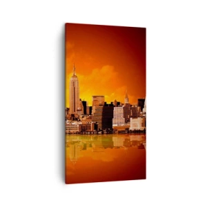 Tablou pe pânză - Panorama unui oraș mare în galben și maro - 45x80 cm