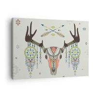 Tablou pe pânză Canvas - Decorațiune boho cu craniu de cerb și captoare de vise - 70x50cm - Trofeul vânătorului indian - Decorațiune modernă pentru perete pentru living și dormitor ARTTOR