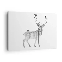 Tablou pe pânză Canvas - Silueta unui cerb cu pădure și păsări - 70x50cm - Spiritul bun al pădurii - Decorațiune modernă pentru perete pentru living și dormitor ARTTOR