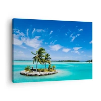 Tablou pe pânză Canvas - O insulă exotică cu palmieri pe ape turcoaz - 70x50cm - Paradisul pe pământ - Decorațiune modernă pentru perete pentru living și dormitor ARTTOR