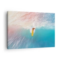 Tablou pe pânză Canvas - Surfer pe un val în culori pastelate - 70x50cm - Călărețul oceanului - Decorațiune modernă pentru perete pentru living și dormitor ARTTOR