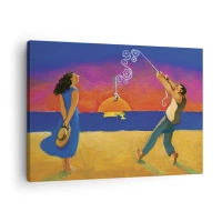 Tablou pe pânză Canvas - Figuri lângă mare la apus - 70x50cm - Mai mult decât o stea din cer - Decorațiune modernă pentru perete pentru living și dormitor ARTTOR