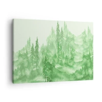 Tablou pe pânză Canvas - Păduri de conifere scăldate într-o ceață delicată - 70x50cm - Înfășurate în ceață - Decorațiune modernă pentru perete pentru living și dormitor ARTTOR