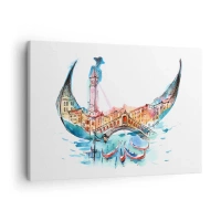 Tablou pe pânză Canvas - O compoziție în acuarelă a Veneției în formă de gondolă - 70x50cm - Croazieră prin oraș - Decorațiune modernă pentru perete pentru living și dormitor ARTTOR