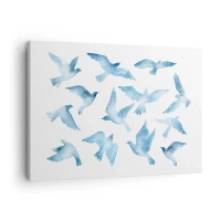 Tablou pe pânză Canvas - O acuarelă subtilă înfățișând păsări în zbor - 70x50cm - Păsări albastre - Decorațiune modernă pentru perete pentru living și dormitor ARTTOR