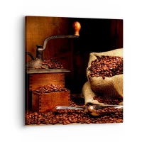 Tablou pe pânză - Natură moartă cu boabe de cafea și măcinător - 30x30 cm