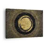 Tablou pe pânză Canvas - Compoziție geometrică în negru și auriu cu raze - 70x50cm - Compoziție glamour - Decorațiune modernă pentru perete pentru living și dormitor ARTTOR