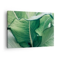 Tablou pe pânză Canvas - Frunze verzi cu detalii și structură expresive - 70x50cm - Viață intensă în verde - Decorațiune modernă pentru perete pentru living și dormitor ARTTOR