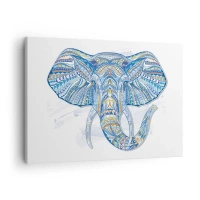 Tablou pe pânză Canvas - Elefant geometric în nuanțe de albastru și auriu - 70x50cm - Incrustat cu aur și albastru - Decorațiune modernă pentru perete pentru living și dormitor ARTTOR