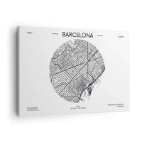 Tablou pe pânză Canvas - O hartă a Barcelonei într-un stil minimalist alb-negru - 70x50cm - Anatomia Barcelonei - Decorațiune modernă pentru perete pentru living și dormitor ARTTOR