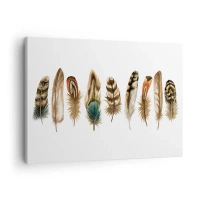 Tablou pe pânză Canvas - Motiv decorativ al unei colecții de pene diverse - 70x50cm - Variație cu pene - Decorațiune modernă pentru perete pentru living și dormitor ARTTOR