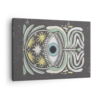 Tablou pe pânză Canvas - Un ochi simbolic înconjurat de modele abstracte - 70x50cm - Ritualuri tribale - Decorațiune modernă pentru perete pentru living și dormitor ARTTOR