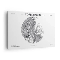 Tablou pe pânză Canvas - O hartă a Copenhagei într-un stil minimalist alb-negru. - 70x50cm - Anatomia Copenhagăi - Decorațiune modernă pentru perete pentru living și dormitor ARTTOR
